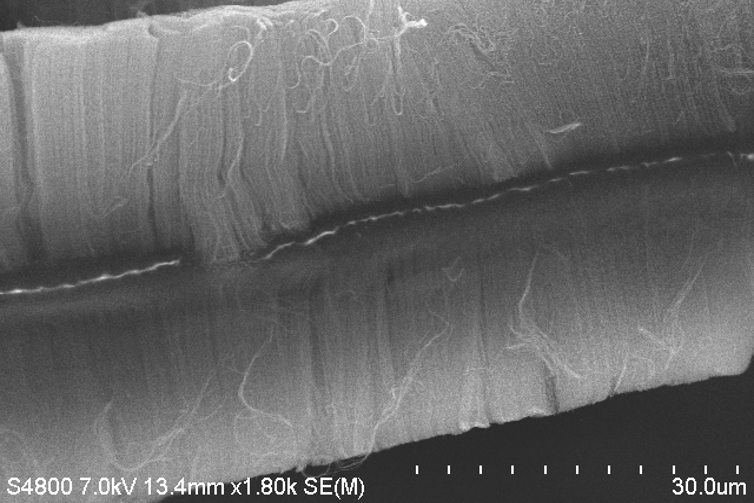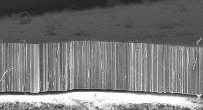 NAWAH possesses unique expertise in the industrial-scale production of vertically aligned carbon nanotubes (VACNT), precisely controlled at nanometric scale. We finely customize the length, density and microstructuration of the nanotubes, thus tailoring the material’s properties to meet specific client requirements.
